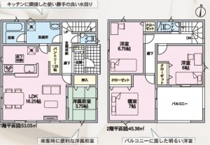 - 側溝、システムキッチン、カウンターキッチン、浴室乾燥機、追い焚き、複層ガラス、モニタ付インターホン、ペット可、駐車場2台分、駐車場3台分、床下収納、トイレ2箇所