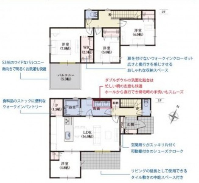 - シャンプードレッサー、洗浄便座、浴室乾燥機、追い焚き、複層ガラス、ルーフバルコニー、ウォークインクローゼット、モニタ付インターホン、ペット可、駐車場2台分、駐車場3台分、トイレ2箇所
